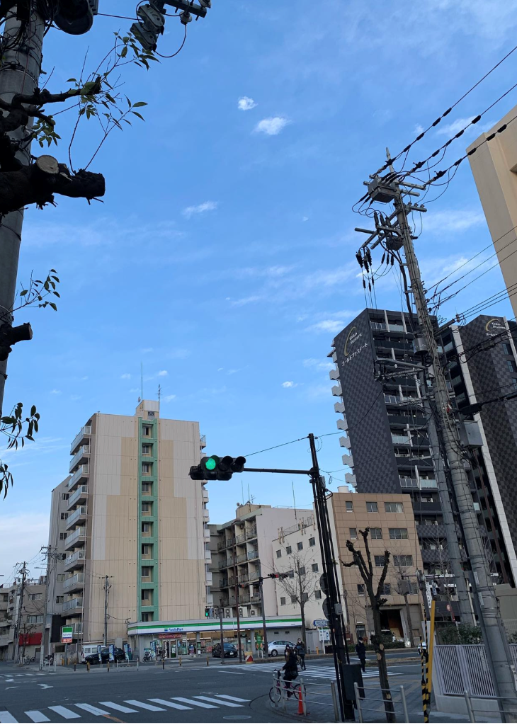 今日の大阪市浪速区はとても良い天気で、心地の良い朝です。